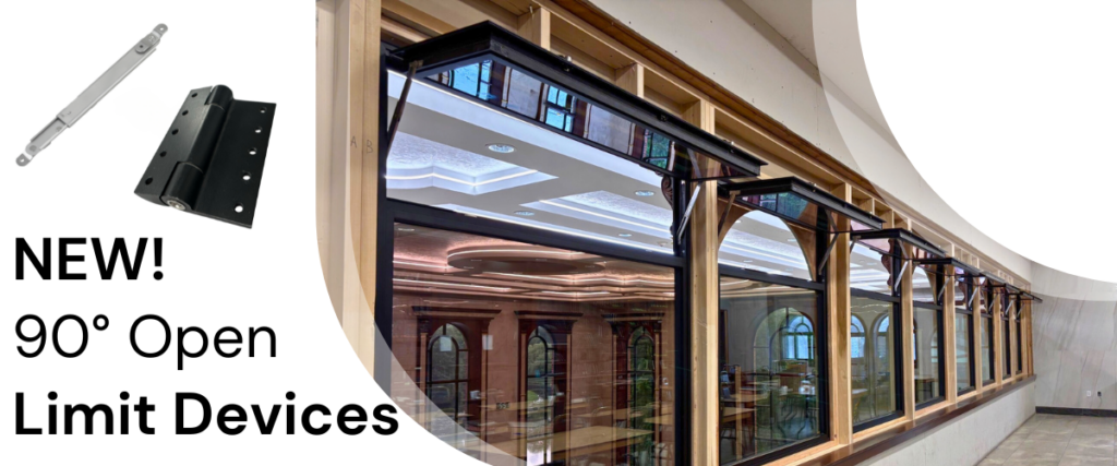 We are now pleased to offer 90° limit devices for our inswing and outswing windows. Used in conjunction with GAMCO’s casement hinge, the limiting devices are perfect to allow optimal airflow or visibility into your spaces.