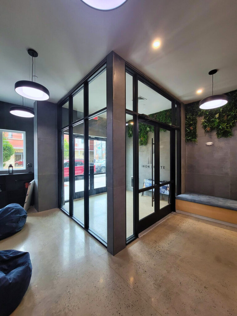 Newark, NJ — GAMCO supplied multiple door and storefront units for the newly-constructed Iron Pointe luxury apartments. Located at 39 Madison Street, this property offers various apartment configurations, state-of-the-art gym, lounges, rooftop views of the NYC skyline, and more.